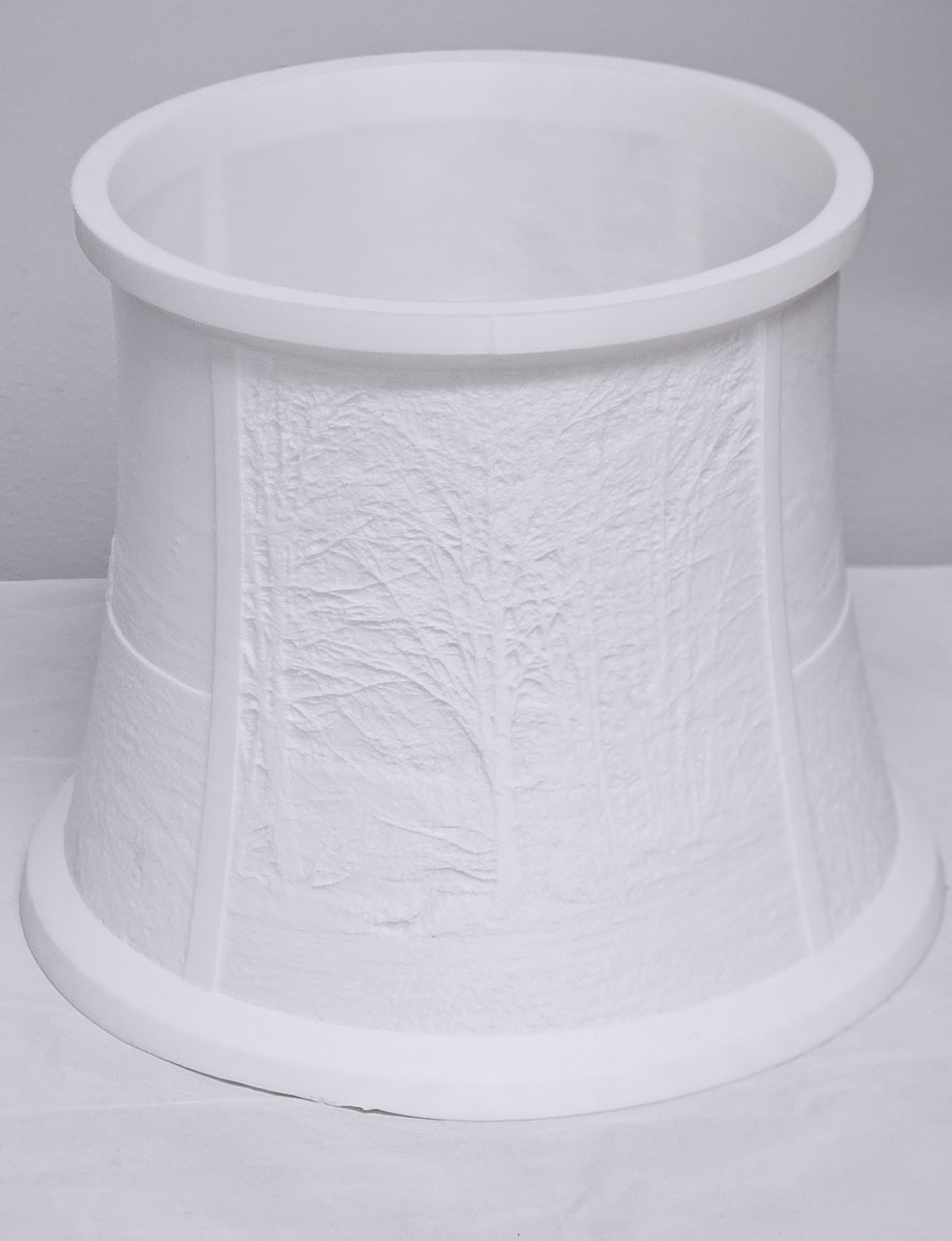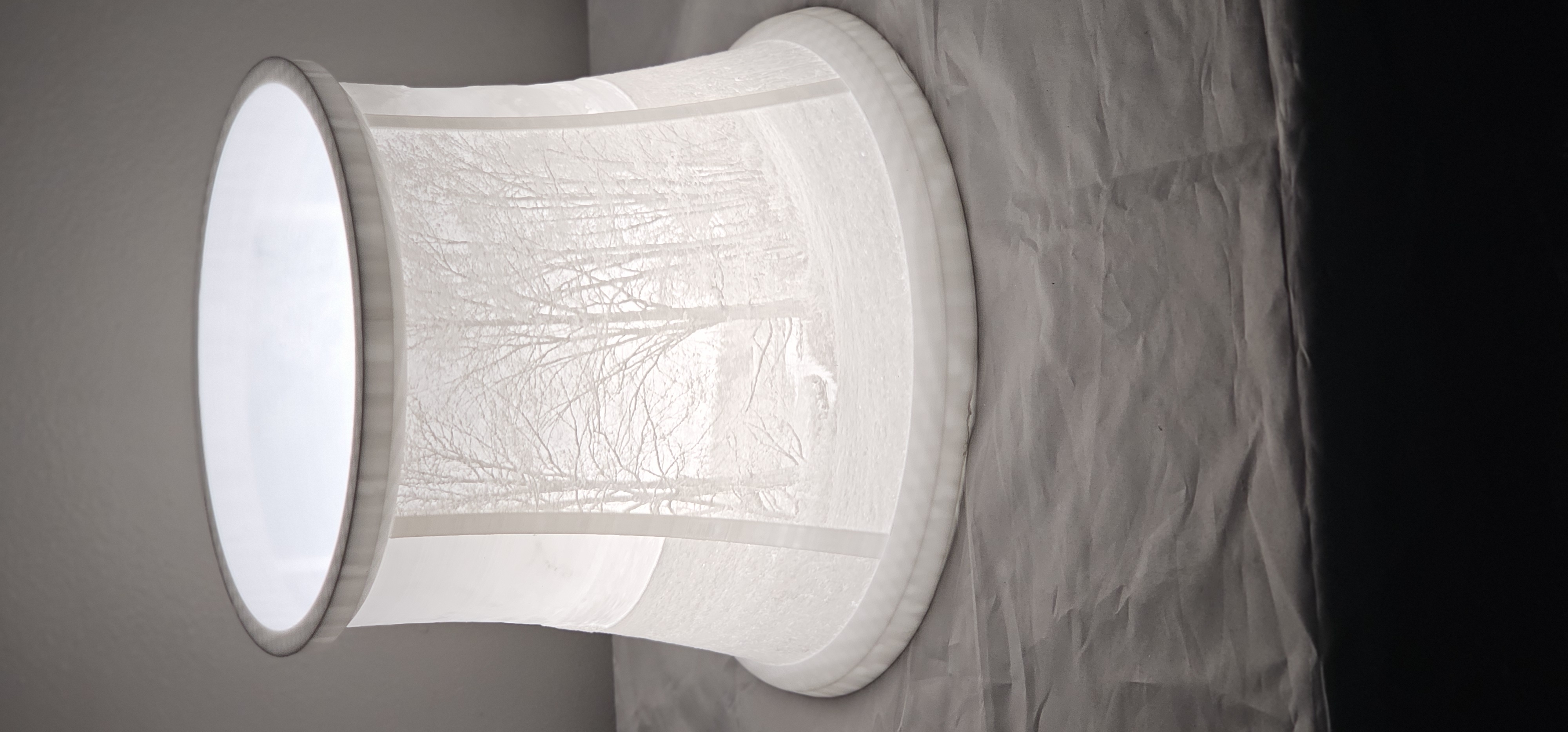 The Lithophane lamp shade is 3D printed and ready for your LED bulb. It is designed by Modern Machine. The Lithophane lamp shade stands approximately 8 inches high. The lampshade is approximately 10 inches at its widest point at the bottom and 8 inches at the top. Lithophane lampshades are 3D printed in white that becomes luminous when the light is turned on the reveal your personal photos.