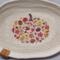 This small oval rope bowl is sewn with cotton rope and thread. The bottom is decorated with a fall themed pumpkins from leaves, berries and pinecones. This will be beautiful for display or to store any number of trinkets or candies. Bowl measures approximately 8 inches by 1.25 inches.
