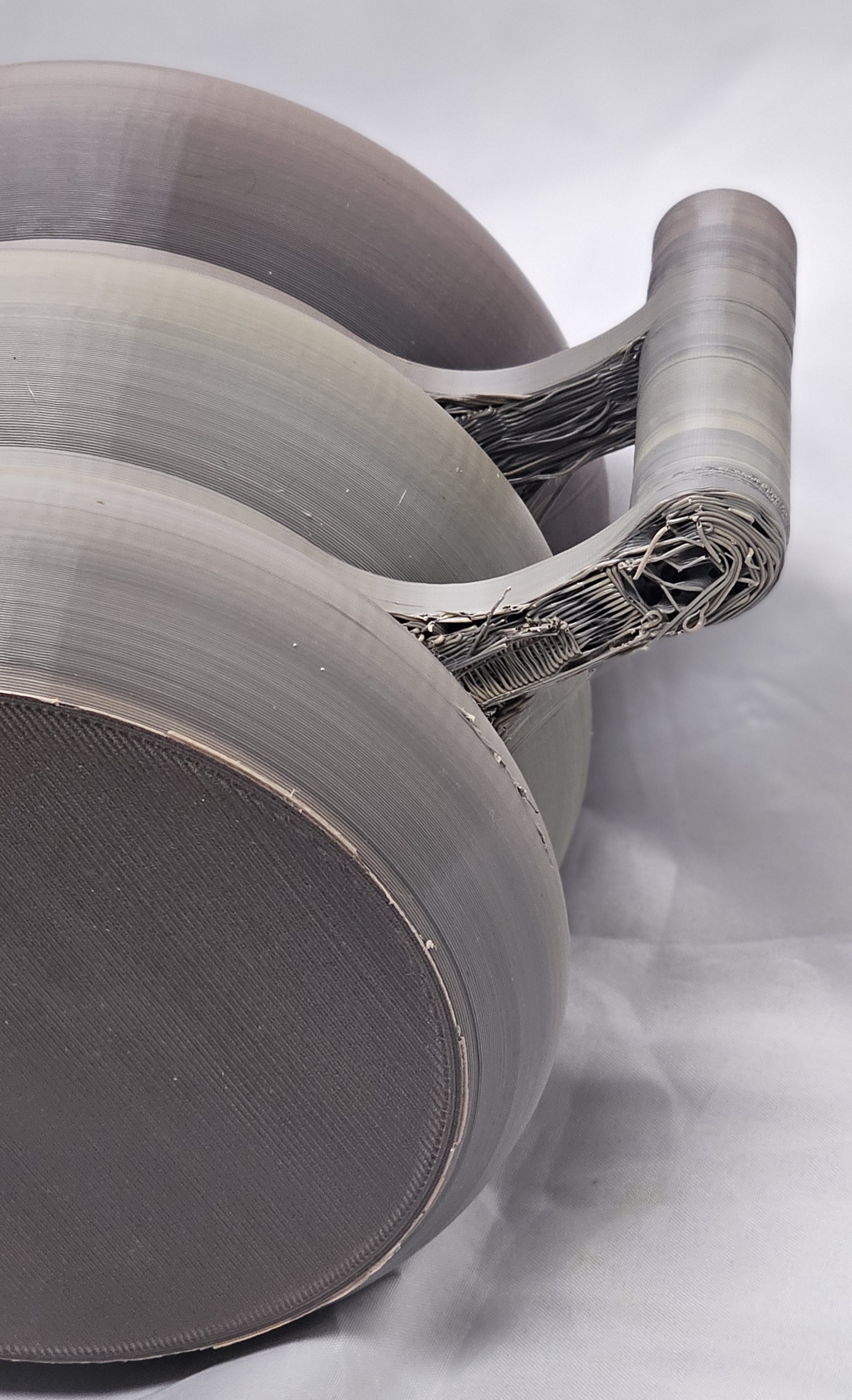 These 3D printed watering can is designed by Modern Machine. The grey/brown color is modern and useful for home or garden plant needs. It has been tested and does hold water to allow plant watering.